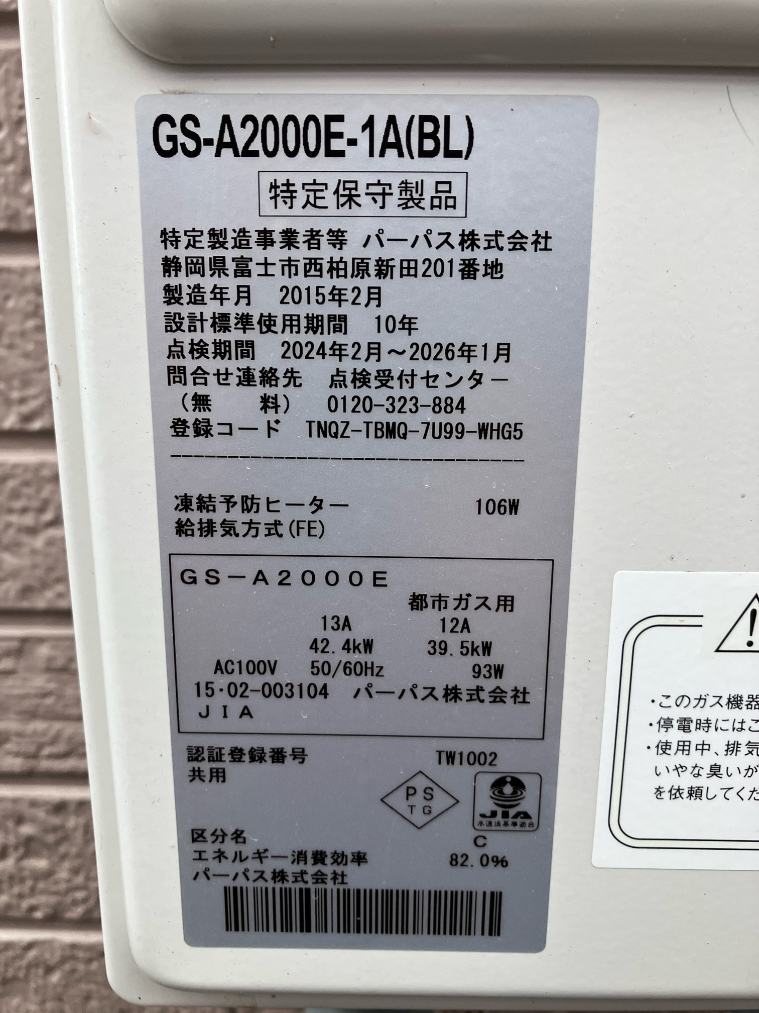 給湯器に貼ってあるこのシールに給湯器の情報が