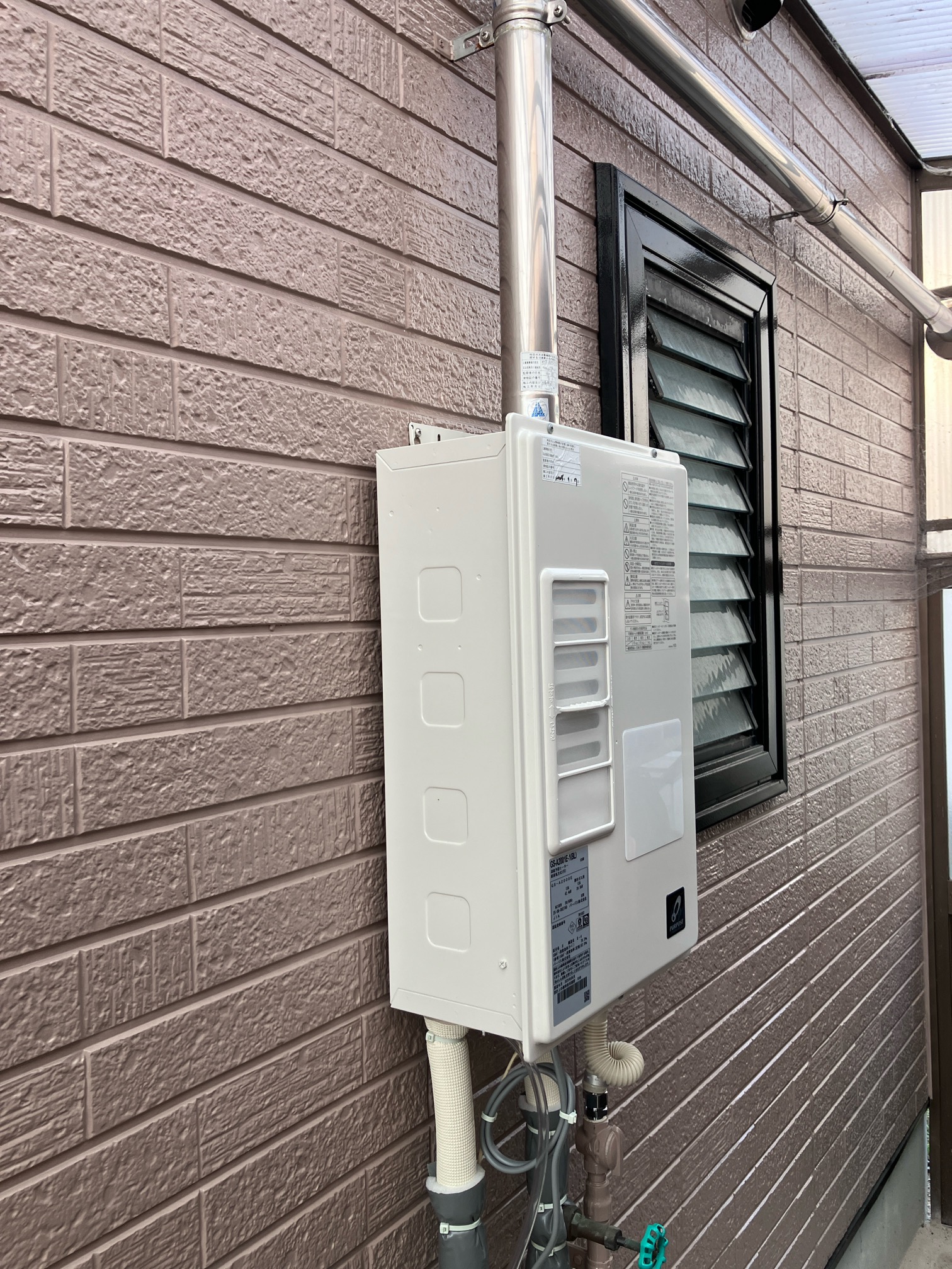 排気ガスをファンで屋外に強制排出させる屋内設置型の給湯器だったことで、同じメーカーでの交換を